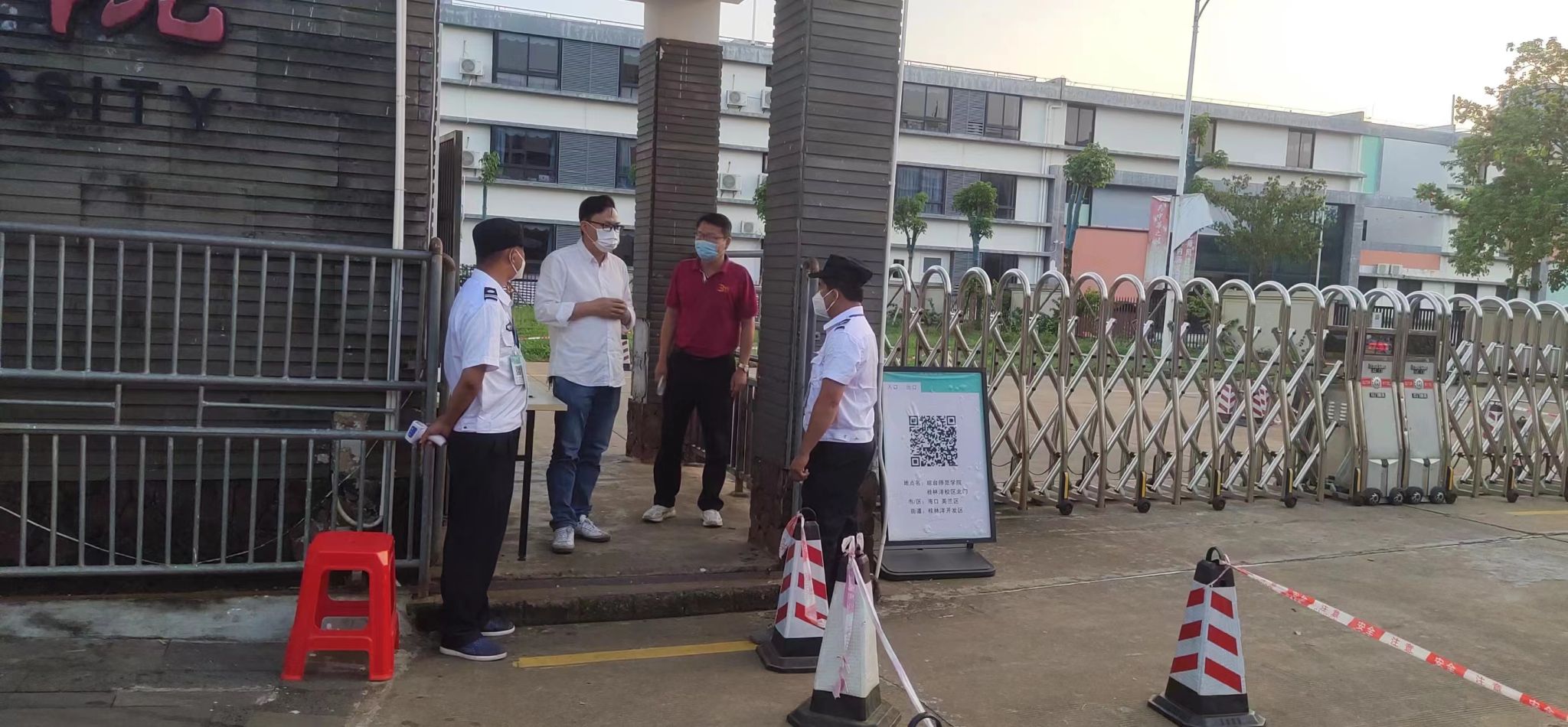 10月11日下午,林琛副校长在陈立副处长陪同下到桂林洋校区北门检查保安工作,并对疫情防控、出入登记、人员管理等工作提出具体要求。