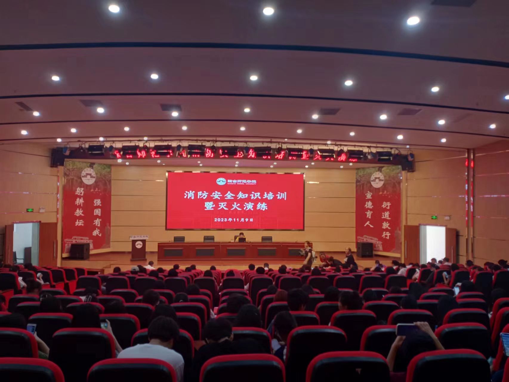 为广泛宣传消防安全常识,不断提高我校师生消防安全意识,提升学校防范重大安全风险的能力,学校2023年11月9日在桂林洋校区图书馆举办消防安全知识培训和灭火演练。实验(实训)室、多媒体教室、计算机房、网络中心、宿管中心、食堂、图书馆、档案馆、书院博物馆、附属幼儿园等管理人员、二级学院学工办负责人、校内各商铺负责人、保安、电工、水工、学生代表参加。