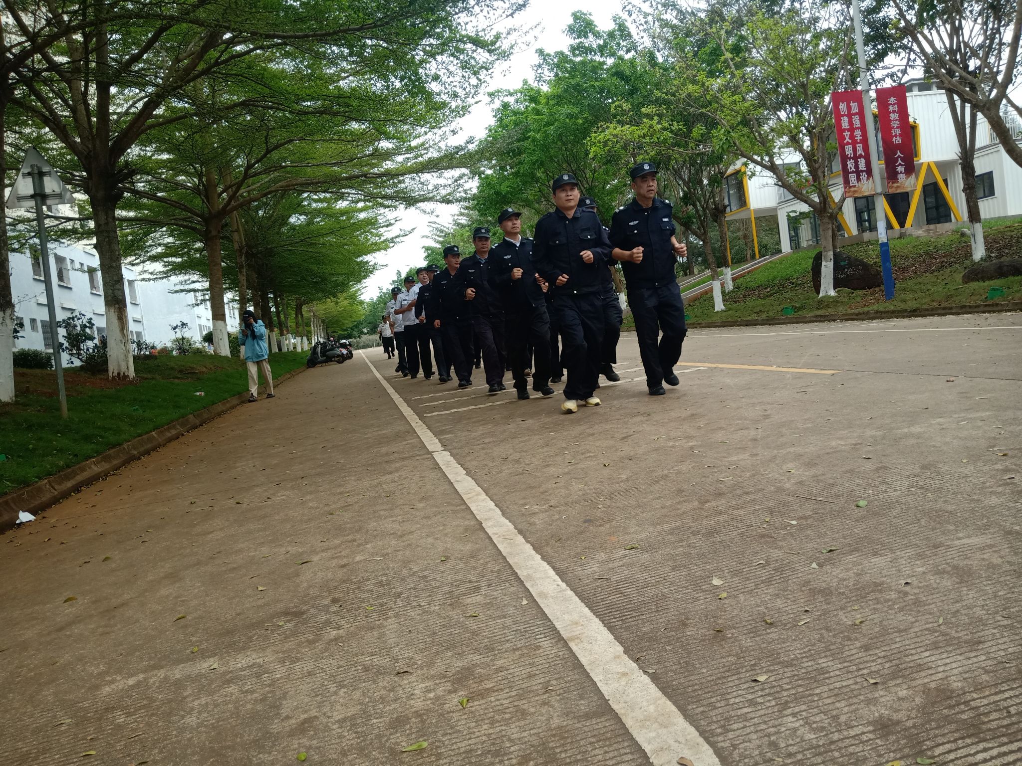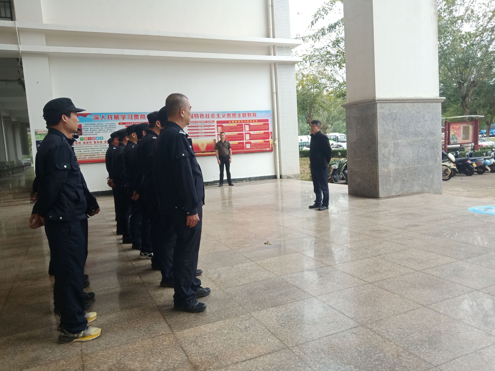 为切实做好保安管理工作,进一步提升保安员的业务的能力,2024年3月13日下午,保卫处组织全体保安员开展集体学习《琼台师范学院保安人员管理条例》及进行集体操练。