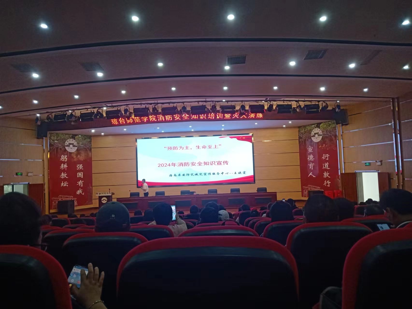 为广泛宣传消防安全常识,不断提高我校师生消防安全意识,提升学校防范重大安全风险的能力,学校2024年4月12日在桂林洋校区图书馆举办消防安全知识培训和灭火演练。实验(实训)室、多媒体教室、计算机房、网络中心、宿管中心、食堂、图书馆、档案馆、书院博物馆、附属幼儿园等管理人员、二级学院学工办负责人、校内各商铺负责人、保安、电工、水工、学生代表参加。