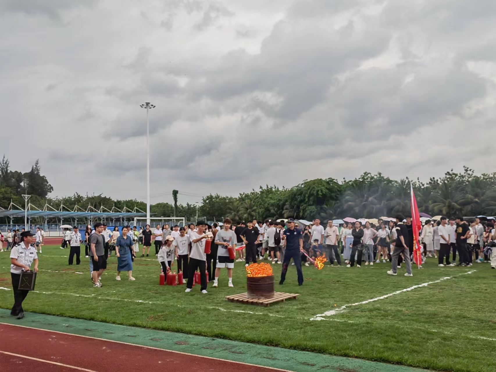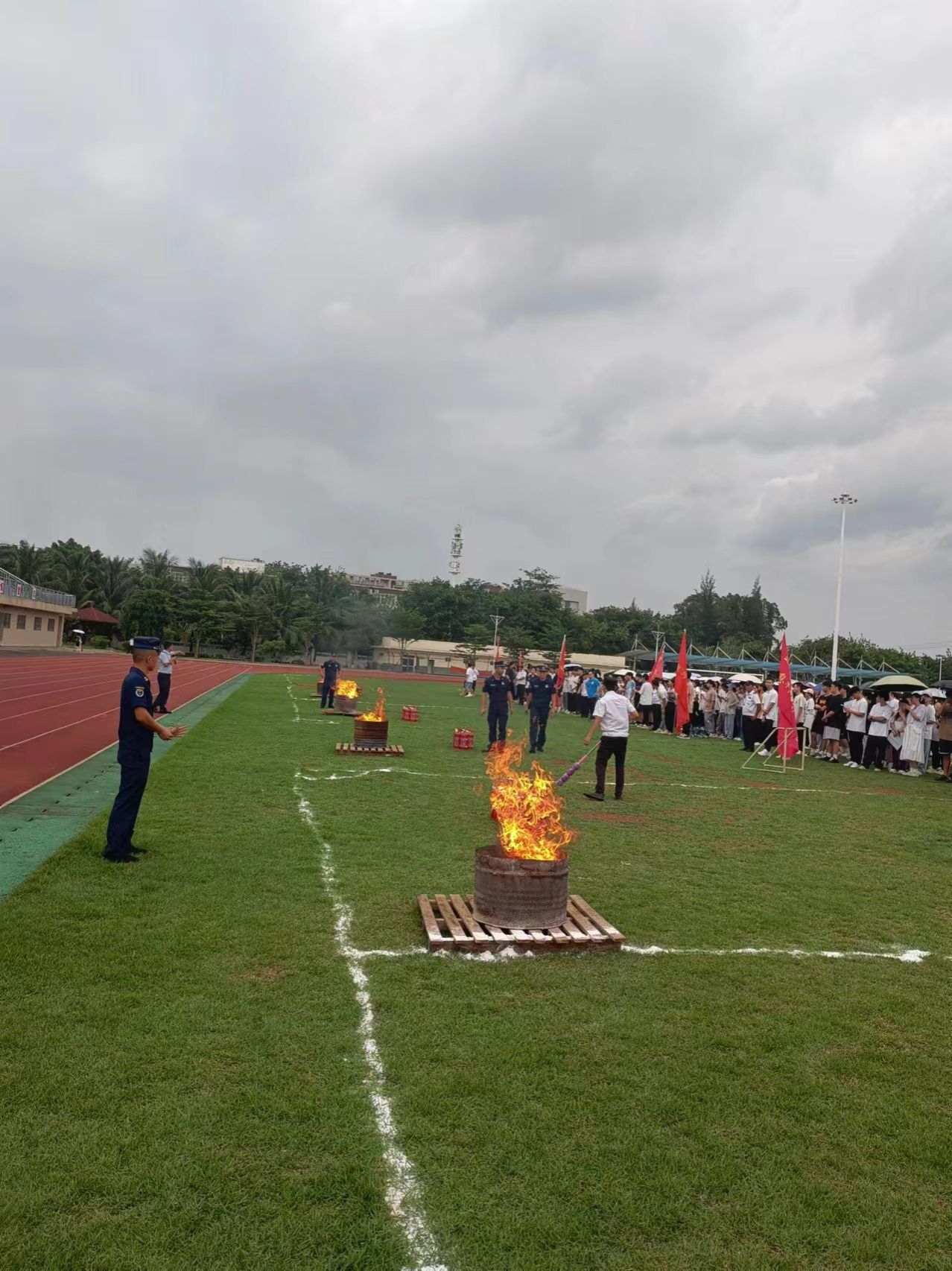 2024年5月28日下午,保卫处牵头,党政办、后勤基建处、学工部、校团委及二级学院协助,邀请桂林洋消防救援站到我校开展紧急疏散暨消防灭火演练,提高学生消防安全意识及防灾自救能力。相关处室负责人、二级学院学工负责人、公寓辅导员、保安员及桂林洋校区全体在校生参加演练。