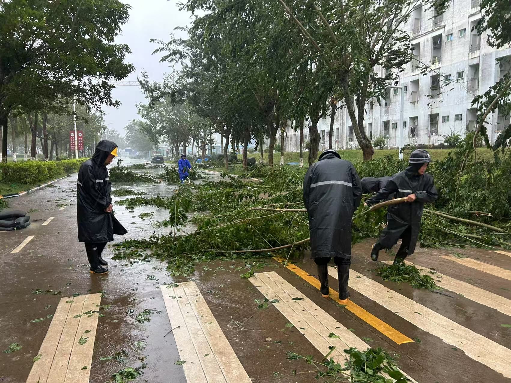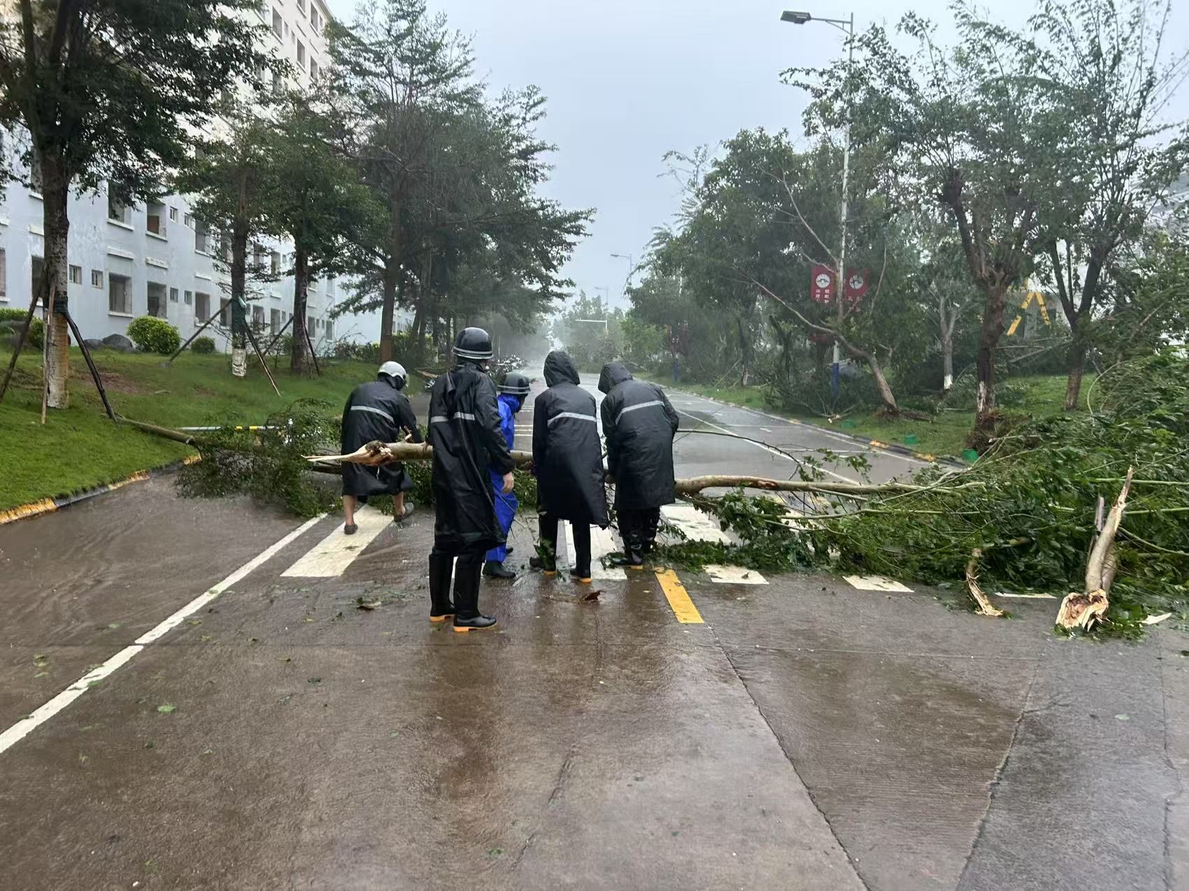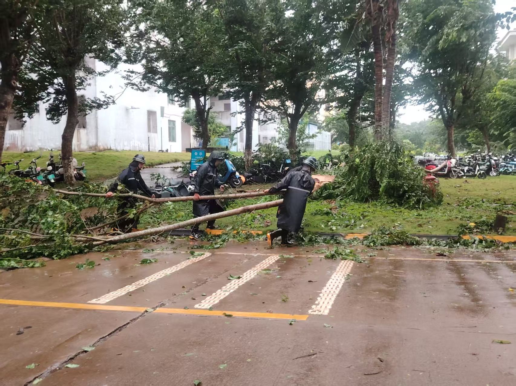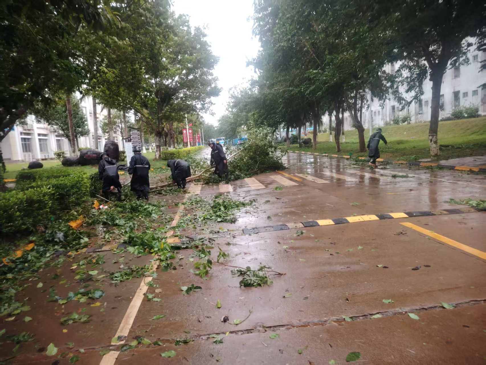 台风“麦德姆”过境后,校园校道遍布断枝落叶,通行受阻 。保卫处抢险救援队迅速分工协作,搬运倒伏枝干,清理散落树枝 。经数小时奋战,受阻校道全部疏通,以高效行动筑牢校园安全防线 。